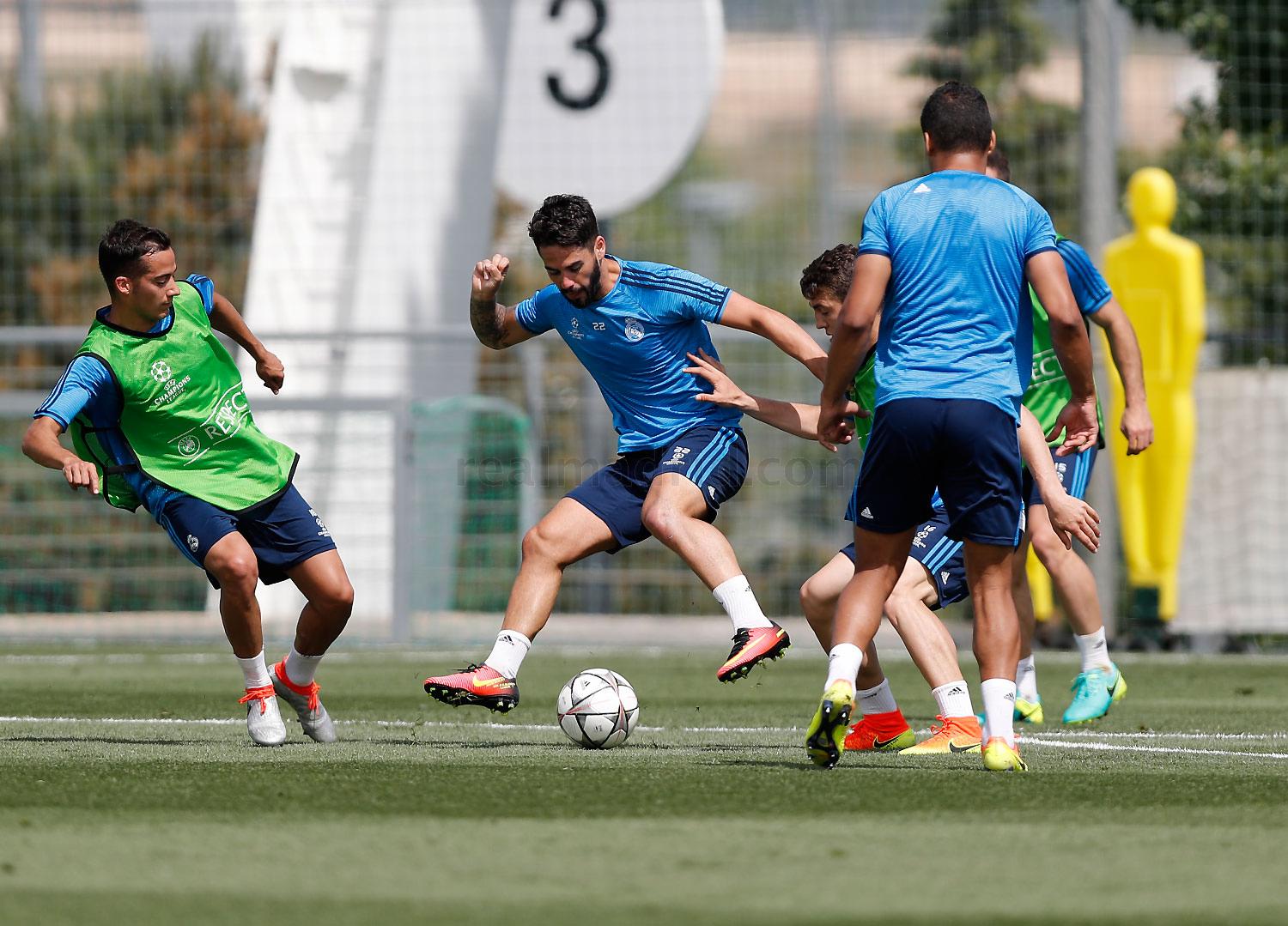 Во вторник «Реал Мадрид» вернулся к тренировкам в Вальдебебас в рамках подготовки к финалу Лиги Чемпионов против «Атлетико». В распоряжении Зинедина Зидана находились все игроки Королевского клуба, за исключением травмированного Рафаэля Варана, а также футболисты «Кастильи» Мартин Эдегор, Маркос Льоренте и Борха Майораль. В конце занятия Криштиану Роналду столкнулся с Кико Касильей, после чего, прихрамывая, покинул тренировочное поле, однако врачи клуба исключают серьезное повреждение у португальского форварда.