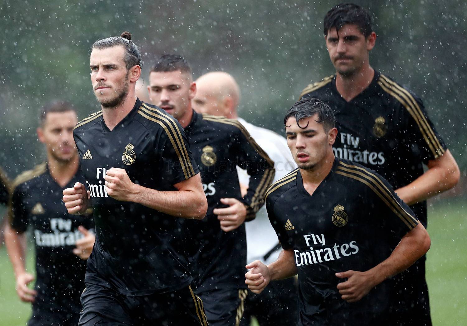После 10 минут работы с мячом игроки «Реал Мадрид» выполнили пробежку под дождливым небом. Жаркую погоду сменила сильная гроза, вынудив команду покинуть поле. Через час после начала тренировки подопечные Зинедина Зидана отправились в тренажерный зал, где продолжили работу.