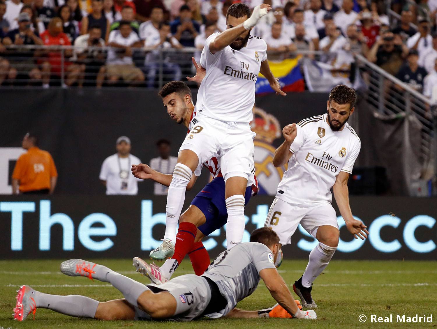 В последнем матче предсезонного американского турне «Реал Мадрид» потерпел разгромное поражение со счетом 3-7 от земляков из «Атлетико». В составе «матрасников», пять раз поразивших ворота «Мадрида» уже в первом тайме, покер записал на свой счет Диего Коста, еще по голу забили Жоау Феликс, Анхель Корреа и Витоло. «Сливочные» смогли хоть как-то ответить лишь во второй половине встречи голами Начо Фернандеса, Карима Бензема и Хави Эрнандеса Карреры. При этом по истечении получаса поле из-за травмы покинул Лука Йович, а на 65-й минуте произошло обоюдное удаление – красные карточки получили Диего Коста и Дани Карвахаль.
