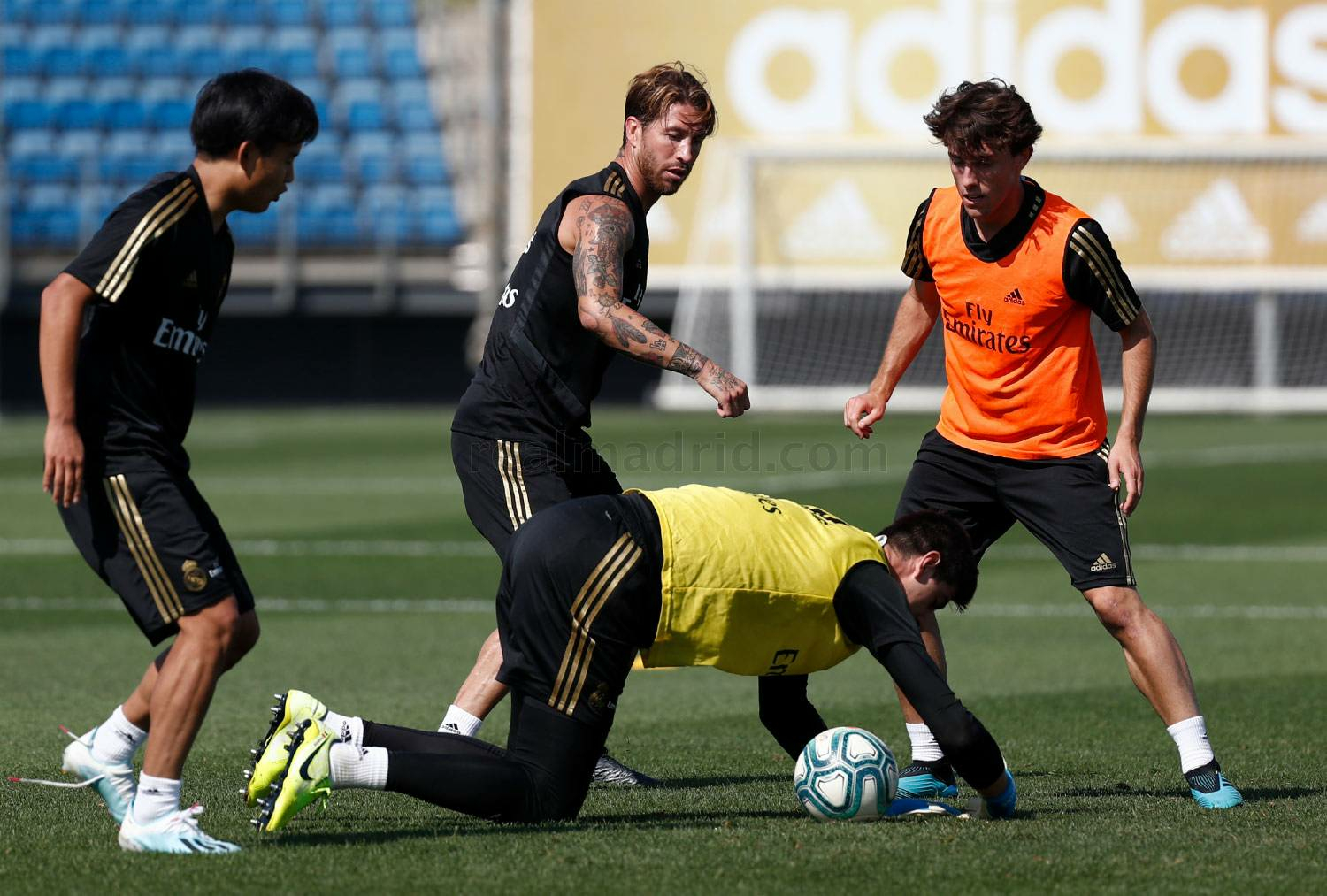 Зинедин Зидан вызвал на тренировку, начавшуюся с разминки, игроков «Кастильи» Диего Альтубе и Такефусу Кубо. После разминки «сливочные» совершили ряд упражнений, сочетавших физическую работу и работу с мячом, упражнения на владение и прессинг, а в завершение провели игры на полях уменьшенного размера.