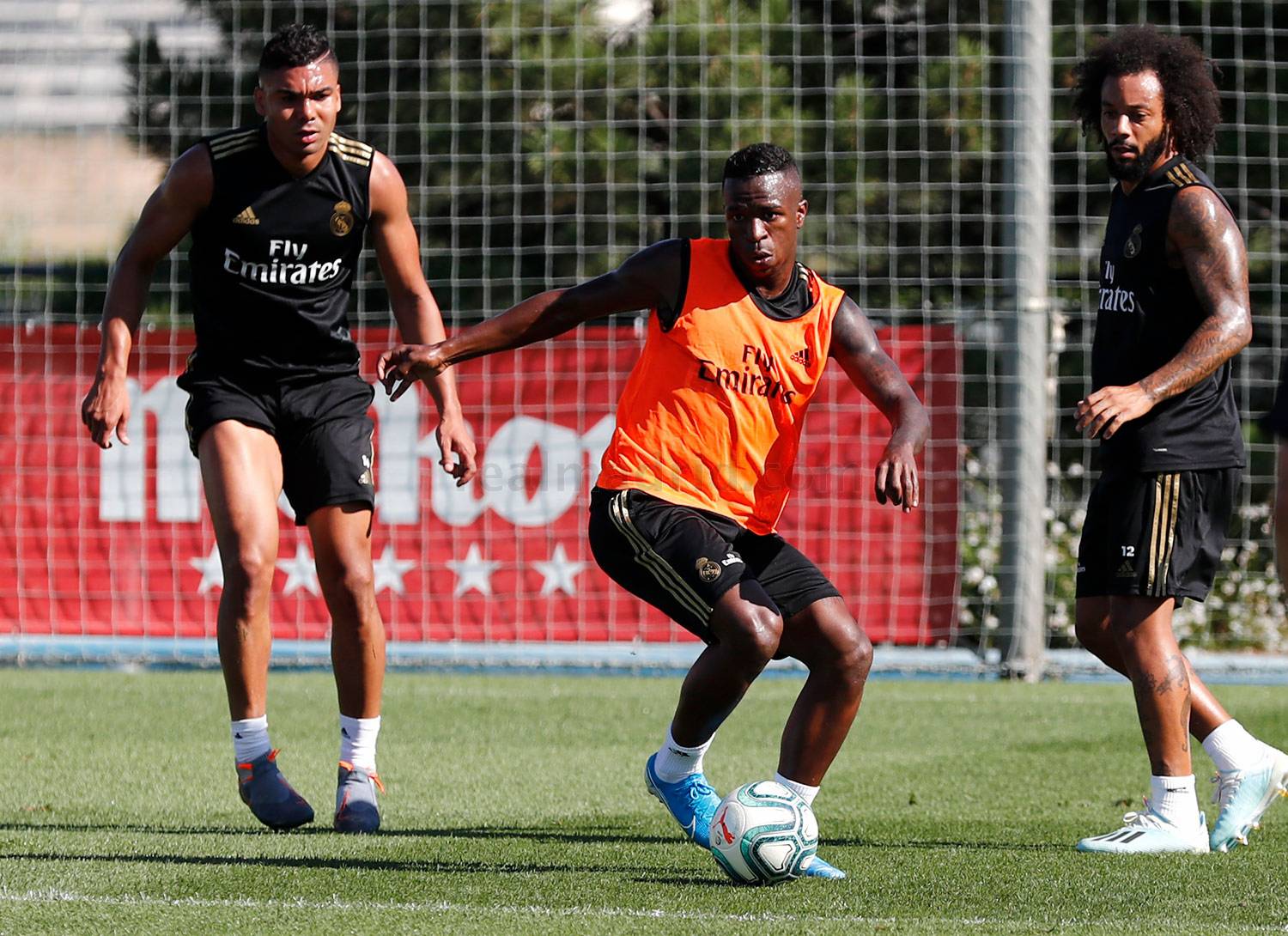 Ферлан Менди, продолжающий восстанавливаться после травмы, занимался на газоне с мячом, а Мариано работал в зале. В тренировке первой команды приняли участие футболисты «Кастильи» Диего Альтубе и Такефуса Кубо, а Марко Асенсио и Родриго Гоэс восстанавливаются после повреждений.