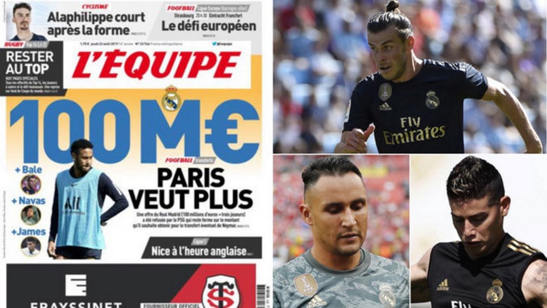 Согласно информации французского спортивного издания L’Equipe, Королевский клуб предлагал за бразильского форварда «ПСЖ» Неймара 100 млн евро и трех игроков – Гарета Бэйла, Хамеса Родригеса и Кейлора Наваса, но получил отказ. Кроме того, французский клуб отклонил также предложения «Барселоны» и «Ювентуса».