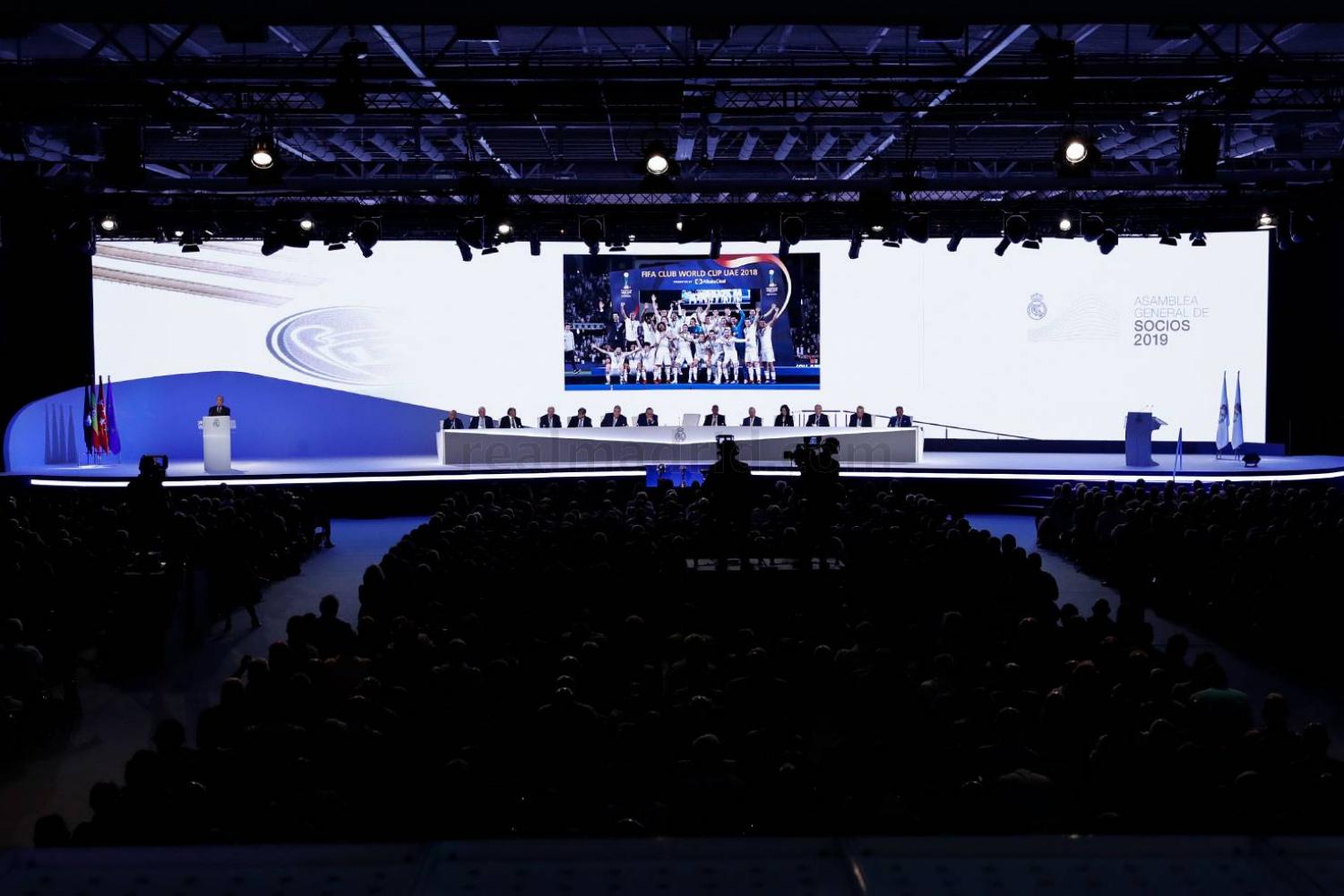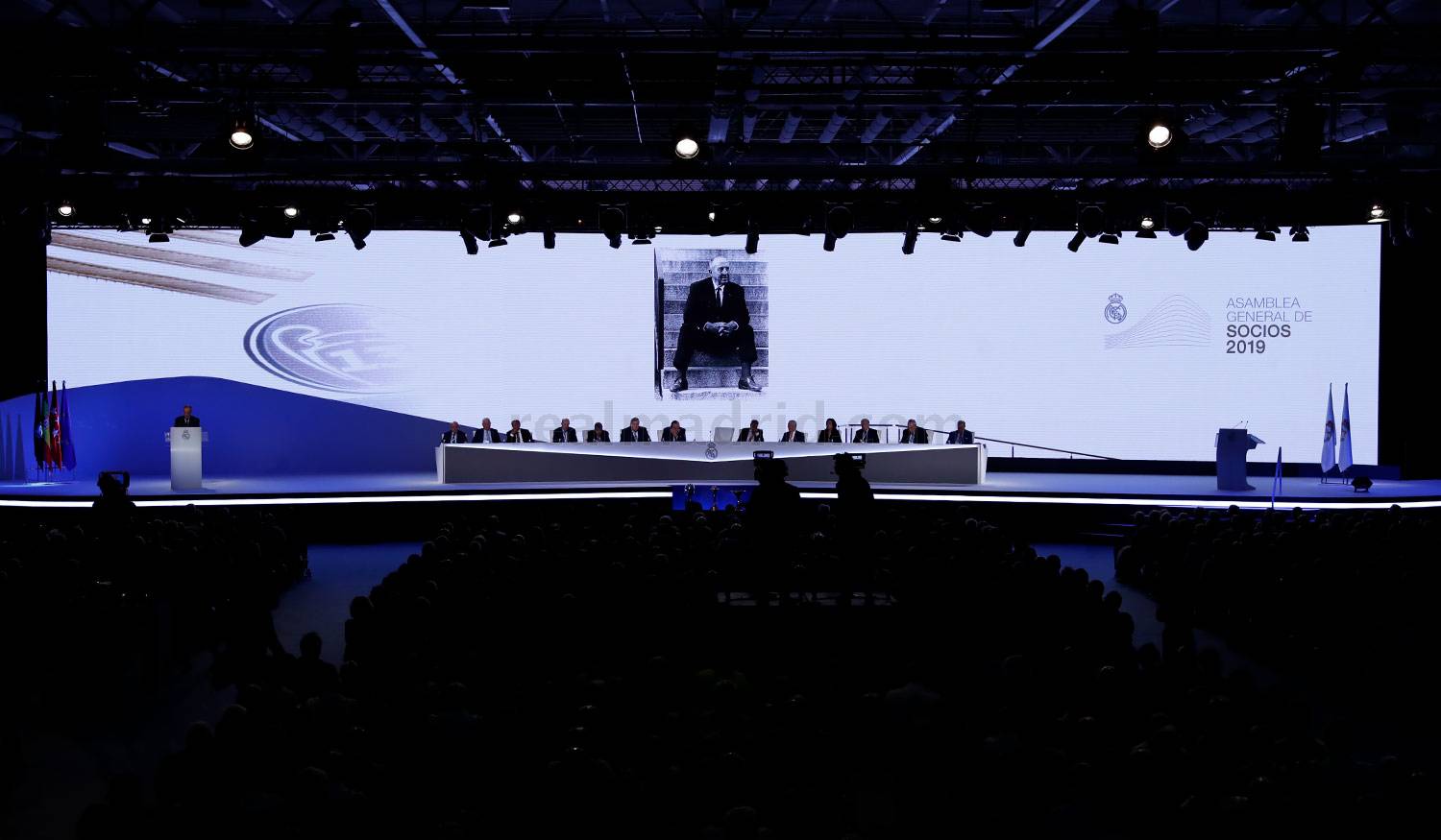 Ассамблея началась с видео с главными моментами прошлого сезона: по правде говоря, в футбольном плане показывать было почти нечего (Клубный Чемпионат Мира, Золотой Мяч Модрича, первое место в рейтинге клубов Deloitte, трансферы Азара, Родриго и Йовича), поэтому большая часть моментов была связана с баскетболом: команда выиграла Суперкубок и Лигу Эндеса. После видео, в котором также упоминались кантера и работа, проделанная Фондом «Реал Мадрид», а также финал Кубка Либертадорес на «Бернабеу» между «Бокой» и «Ривером», настала очередь отчета президента.