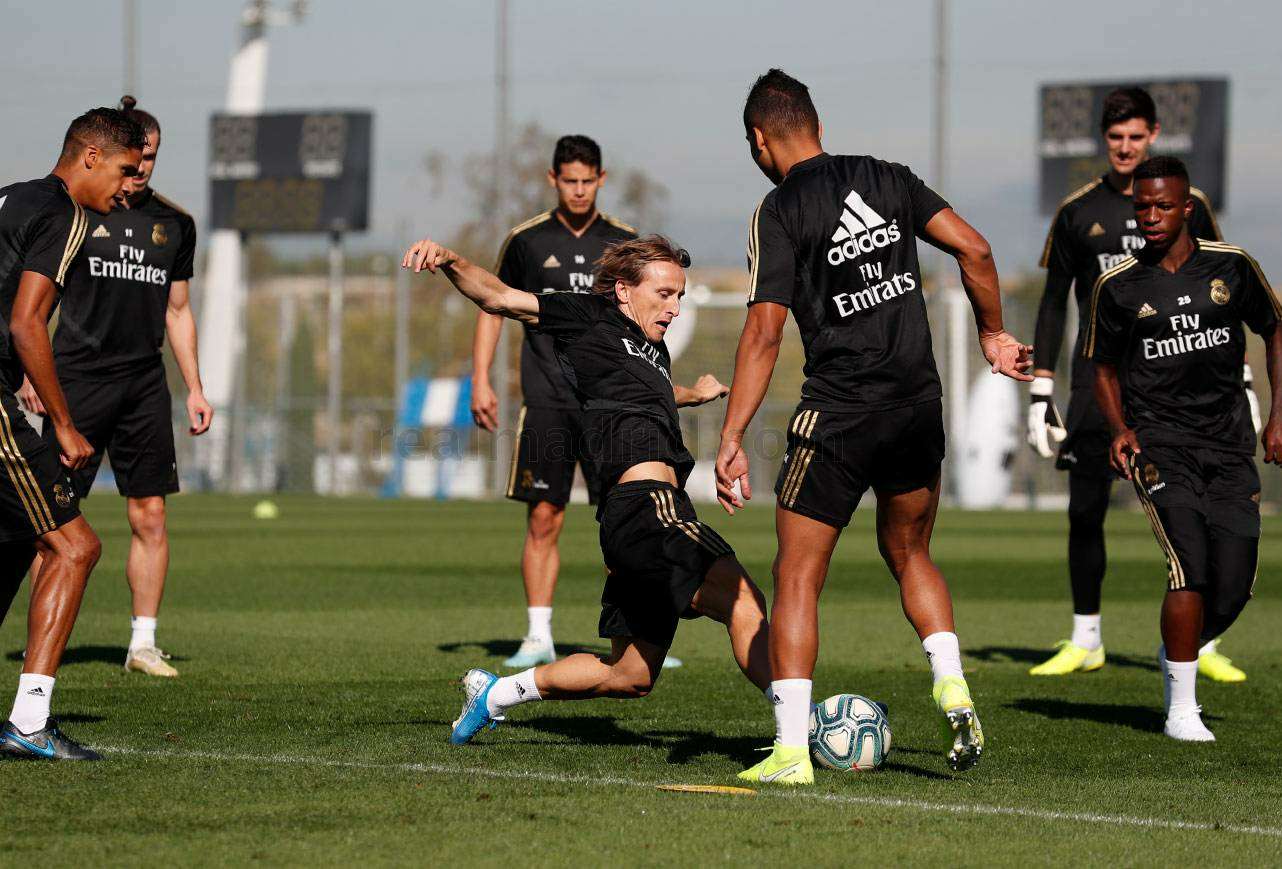 Футболисты, включая Луку Модрича и Иско, выполнили серию упражнений «рондо» и спринтов, после чего разделились на две команды, чтобы отработать владение, а в завершение провели игру на поле уменьшенного размера. Марсело работал индивидуально с мячом и без него. Марко Асенсио и Ферлан Менди продолжают восстанавливаться от травм.