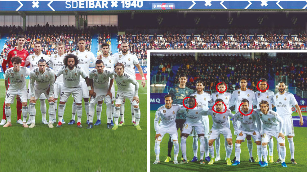 Только пять игроков основы «Мадрида» прошлого года вышли в старте в субботу: Куртуа, Варан, Рамос, Модрич и Бензема. Марсело был заменен на Менди, Кроос на Вальверде, Себальос на Каземиро, Бэйл на Васкеса, Асенсио на Азара.
