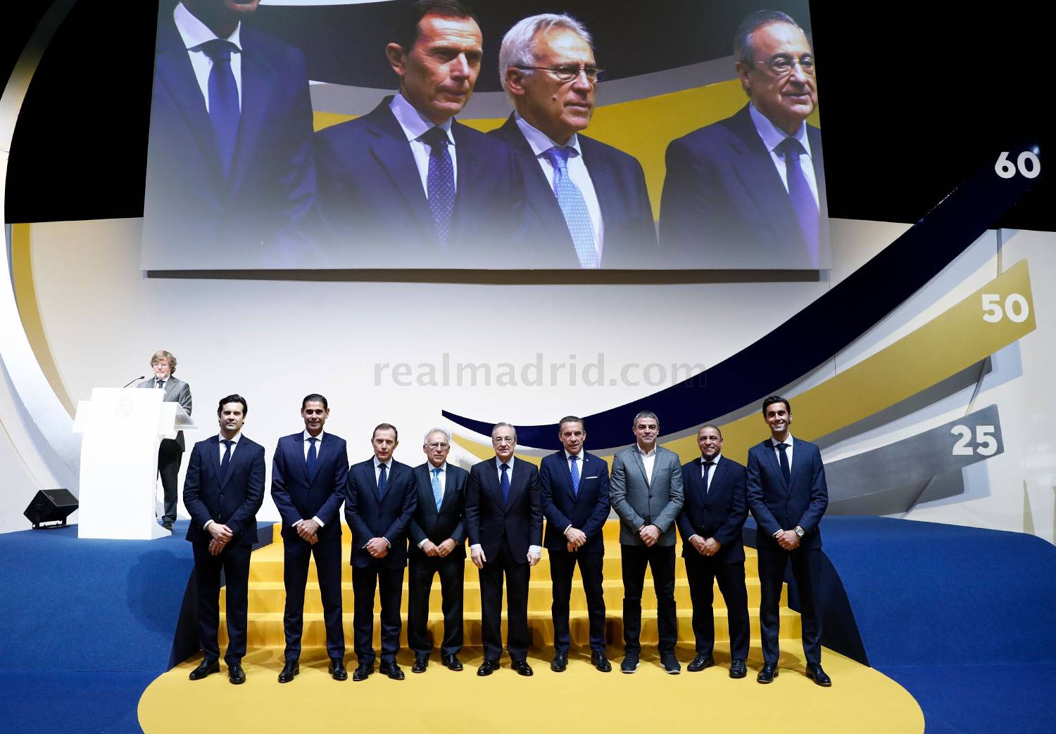 «50 лет назад, в 1969 году, «Реал Мадрид» в очередной раз стал чемпионом Лиги с пичичи Амансио, а баскетбольная команда выиграла и Лигу, и Кубок. В 1994 году, 25 лет назад, родилась новая звезда – в Сарагосе дебютировал 17-летний парень, ставший легендой: так началась эпоха Рауля. Кроме того, у баскетбольной команды «Мадрида» появился новый тренер – Желько Обрадович, с ним мы выиграли восьмой Кубок Европы. Дорогие сосьос, сегодня мы воздаем вам почести! Спасибо всем и примите поздравления!».