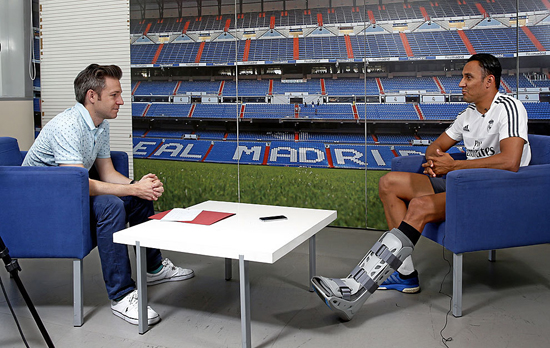 Сейчас, в разгар июня, Кейлор Навас является чуть ли не единственным игроком, работающим на тренировочной базе мадридского «Реала» в Вальдебебас. Костариканский голкипер остался без каникул ради того, чтобы как можно быстрее восстановиться от травмы, из-за которой ему 15 дней назад пришлось перенести операцию. В пятницу, 24 июня, Навас, который пока еще ходит на костылях, дал испанскому спортивному изданию Marca интервью, в котором поделился с журналистами своим огромным желанием и дальше добиваться больших побед в составе Королевского клуба.