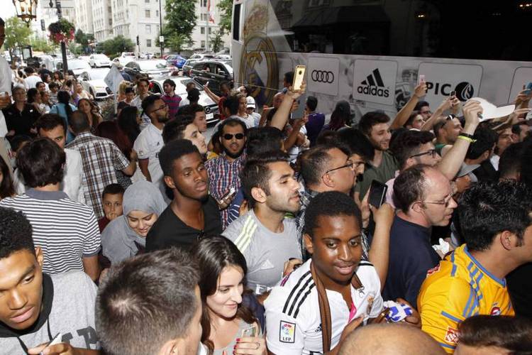 К гостинице Ritz Carlton, в которой расположился «Реал Мадрид», прибыло около 150 болельщиков, желающих поприветствовать игроков: фанаты эмоционально встретили Королевский клуб, перепрыгивая через ограждения и, фактически, не позволяя игрокам доставать чемоданы. Особенно бурной была встреча Зинедина Зидана, увидев которого, болельщики принялись скандировать: «Зизу, Зизу!». По прибытии в отель игроки поужинали и достаточно рано отправились отдыхать, чтобы избежать последствий резкой смены часовых поясов.