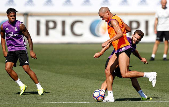 Тренировочная сессия длилась в течение двух часов. Карим Бензема, Кейлор Навас и Фабио Коэнтрао занимались с общей группой лишь первую половину тренировки, в то время как Пепе поучаствовал во всем занятии, а Криштиану Роналду, продолжающий восстанавливаться после травмы, совмещал работу на поле и в тренажерном зале.