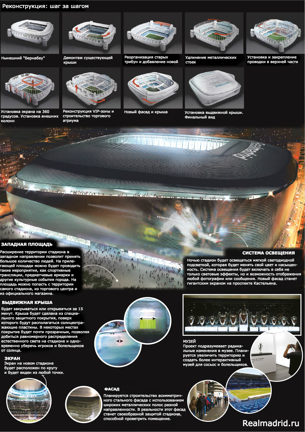 «Мадрид» перестроит стадион в рамках требований суда, не расширяя территорию и не занимая общественный участок земли. Cтоимость составит примерно 400 миллионов евро.