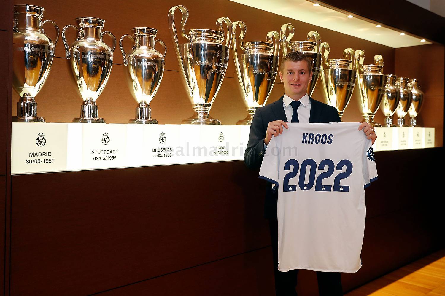 «17 июля 2014 состоялась презентация Тони Крооса как игрока «Мадрида», и мы все были в тот день счастливы, потому что в наш клуб перешел невероятный футболист, который только что выиграл Чемпионат Мира. Прошло два года и три месяца, ты уже выиграл Лигу Чемпионов, и мы вновь здесь – на этот раз, чтобы сообщить о продлении контракта до 2022 года. Я хочу поблагодарить тебя за твой профессионализм и преданность «Мадриду». Мы знаем, что ты осознаешь свою значимость для команды, и верим в тебя. Хочу пожелать тебе всего самого лучшего и удачи».