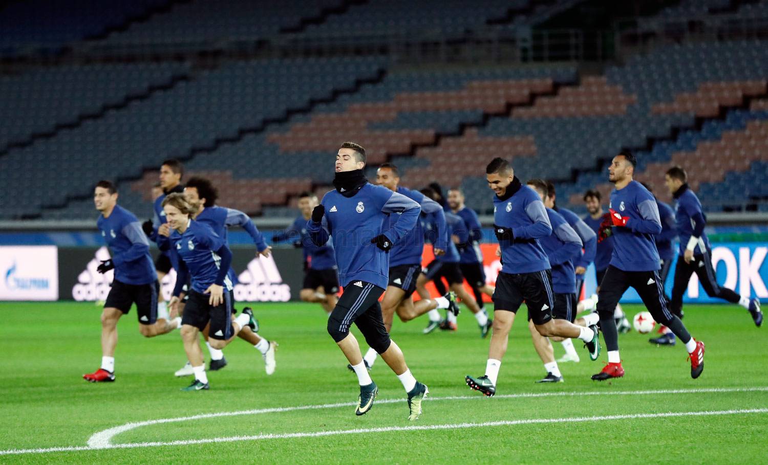 Тренировка началась с работы с мячом: состав разделился на две группы, в каждой из которых футболисты играли в «квадрат». После этого игроки Королевского клуба занимались челночным бегом, а в конце занятия Зинедин Зидан снова дал своим подопечным упражнения на контроль мяча. Серхио Рамос занимался отдельно на поле, в то время как Пепе тренировался в зале.