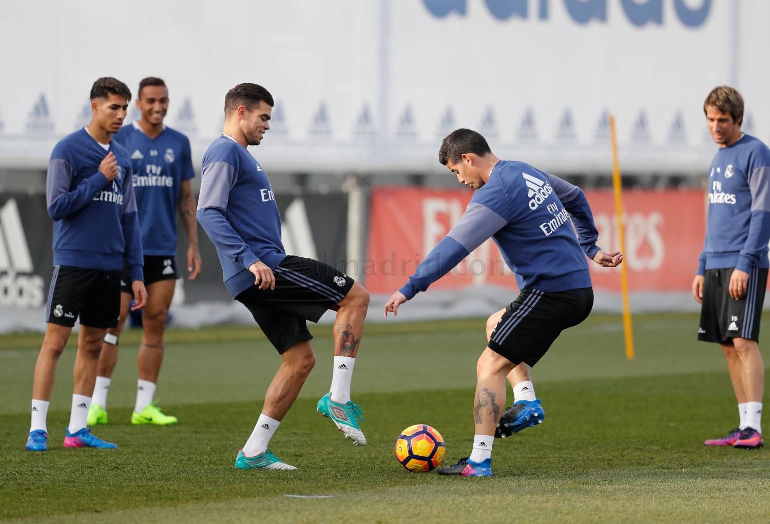 Тренировочная сессия, к участию в которой Зинедин Зидан привлек игроков «Кастильи» Ашрафа Хакими и Энцо Зидана, была сфокусирована на работе с мячом. Игроки Королевского клуба выполняли различные упражнения на владение мячом, прессинг, дриблинг и удары на точность, после чего сыграли несколько матчей на малых полях и потренировали удары по воротам. Марсело, Дани Карвахаль, Лука Модрич, Гарет Бэйл и уже упомянутый Пепе продолжают процесс восстановления после травм, сочетая работу на поле с занятиями в тренажерном зале.