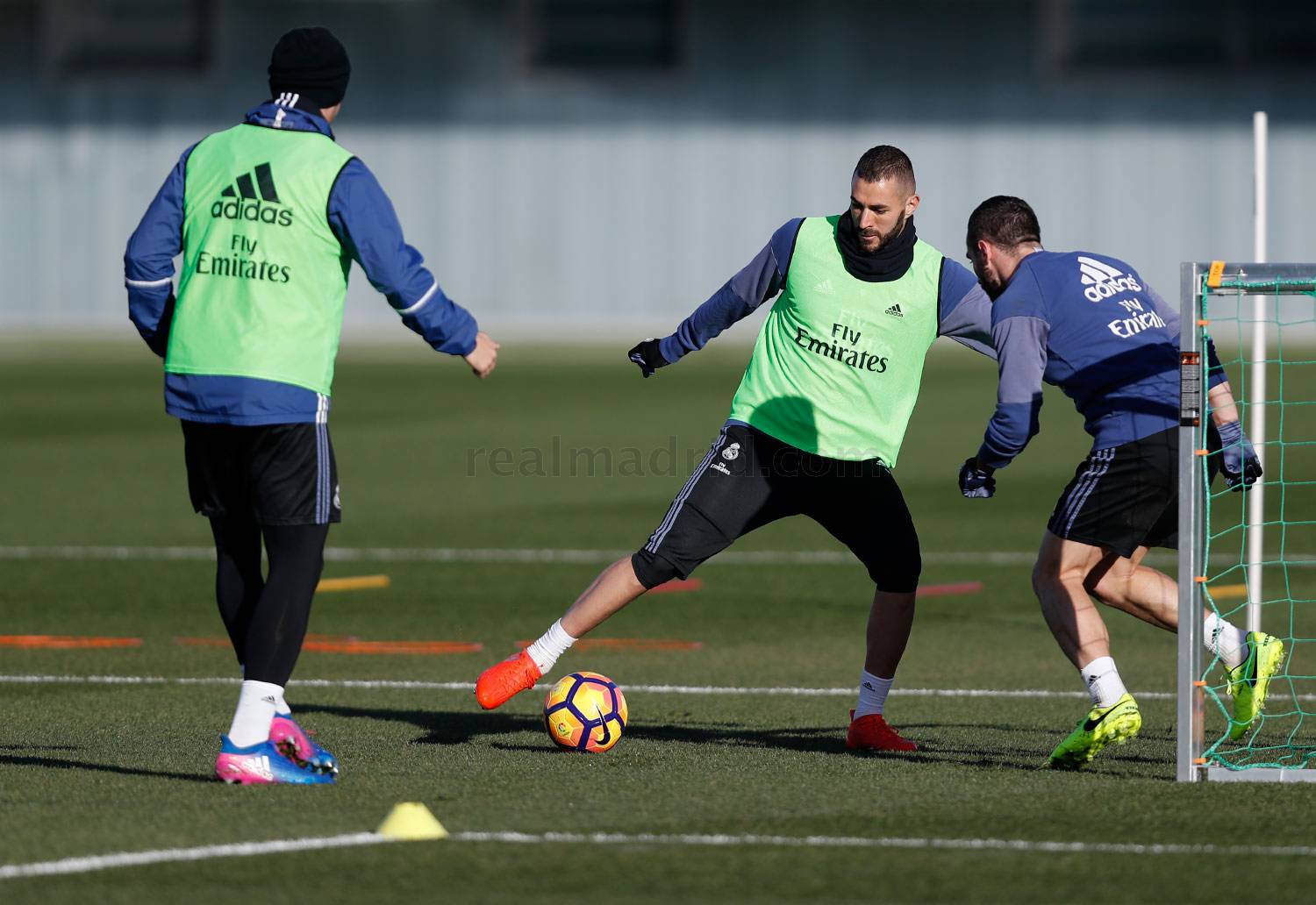 В рамках тренировочной сессии, на которую Зинедин Зидан вызвал своего сына Энцо, игроки выполняли упражнения с мячом, направленные на отработку техники, владения, прессинга и ударов по воротам. Гарет Бэйл, продолжающий восстанавливаться после травмы, совмещал работу в зале и упражнения на поле.