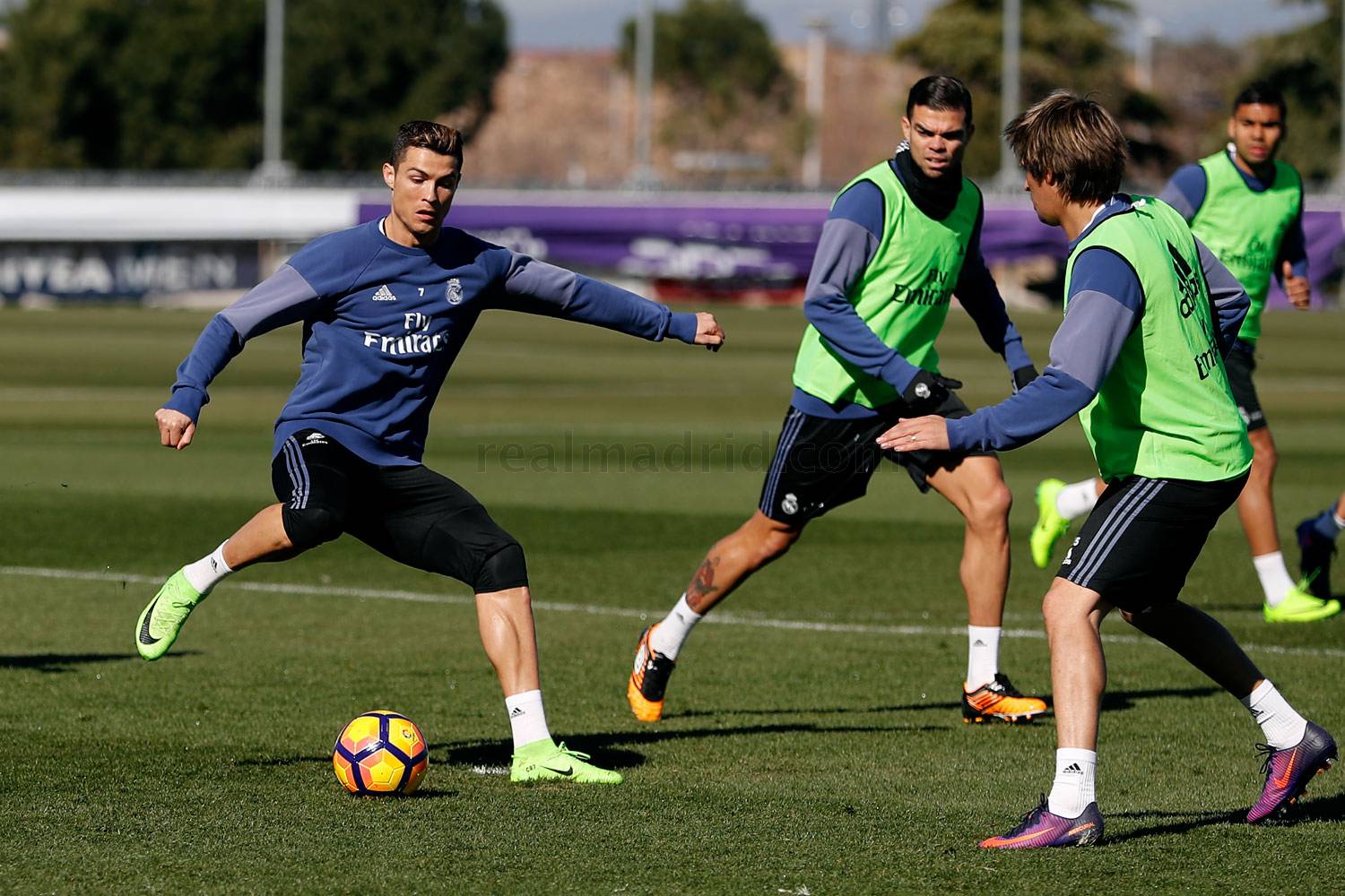 Игроки мадридского «Реала» провели вторую на неделе тренировку, завершившую процесс подготовки к перенесенному матчу 16-го тура Ла Лиги против «Валенсии». В рамках сегодняшнего занятия, к участию в котором Зинедин Зидан привлек из «Кастильи» своего сына Энцо, игроки «сливочных» выполняли упражнения на владение мячом и прессинг, навесы и удары по воротам, а в конце тренировки провели несколько матчей на ограниченных пространствах.