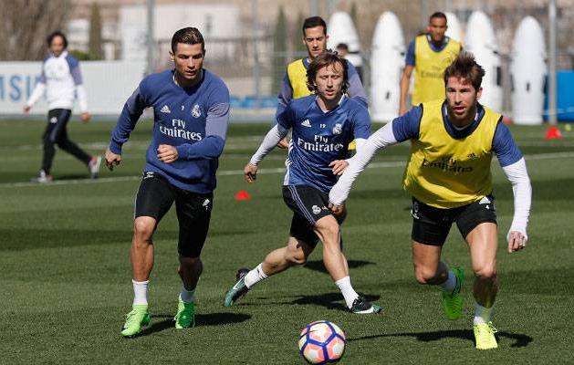 Сегодня «Реал Мадрид» провел первую тренировку в рамках подготовки к матчу 27-го тура Ла Лиги против «Бетиса», который состоится в воскресенье, 12 марта, в 22:45 по московскому времени на «Сантьяго Бернабеу». Основное внимание на тренировочной сессии, в которой также приняли участие футболисты «Кастильи» Энцо Зидан и Альваро Техеро, была работа с мячом. Фабио Коэнтрао и Пепе занимались в тренажерном зале.