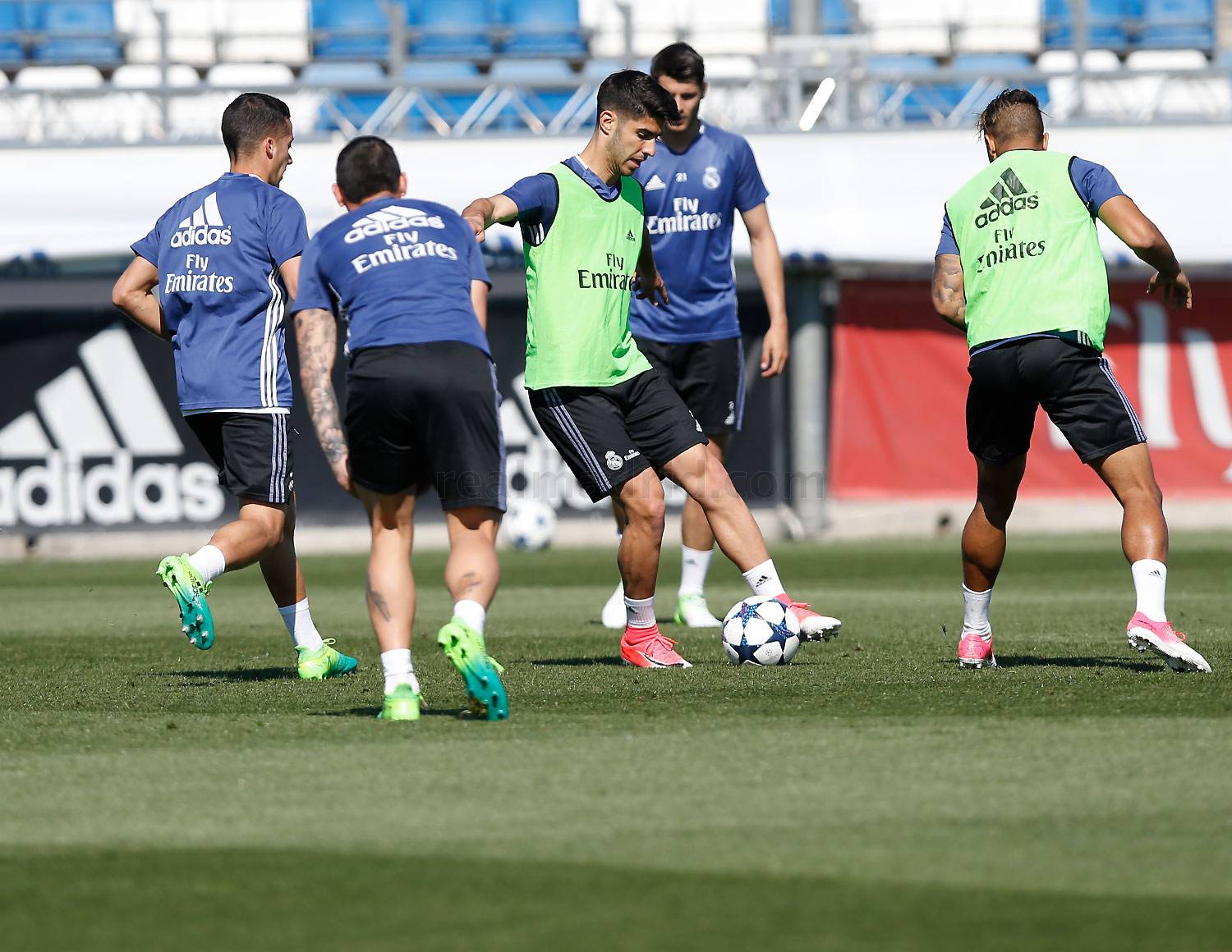Оставшиеся игроки основной группы выполняли упражнения на контроль мяча, точность передач, владение и прессинг, после чего перешли к коротким пробежкам и отработке ударов по воротам. В завершение тренировочного занятия «сливочные» сыграли на малых полях несколько матчей в высоком темпе.