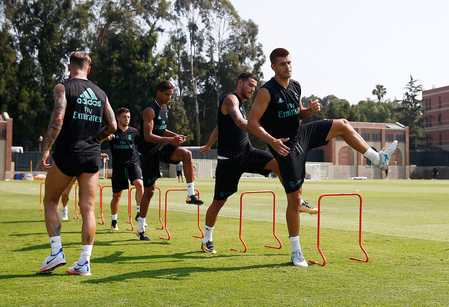 «Реал Мадрид» продолжает подготовку к новому сезону в кампусе Калифорнийского Университета. В рамках шестого тренировочного дня к команде Зинедина Зидана присоединился Серхио Рамос: капитан команды, в воскресенье тренировавшийся отдельно от команды, провел первую часть занятия вместе со своими партнерами по команде, после чего приступил к индивидуальным беговым упражнениям.