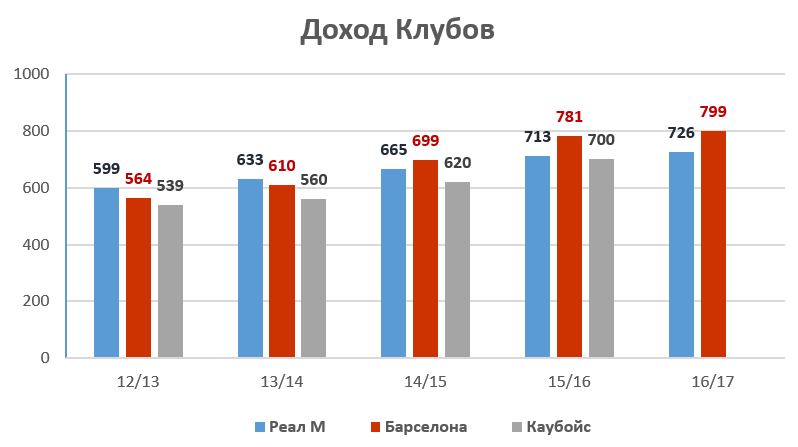 Информация о «Барселоне» и «Реал Мадрид» взята из финансовых отчетов клубов. Суммы указаны в долларах США по курсу 1€=1,15$. Цифры на сезон 2016/17 отражают прогнозы команд, заложенные в бюджеты.