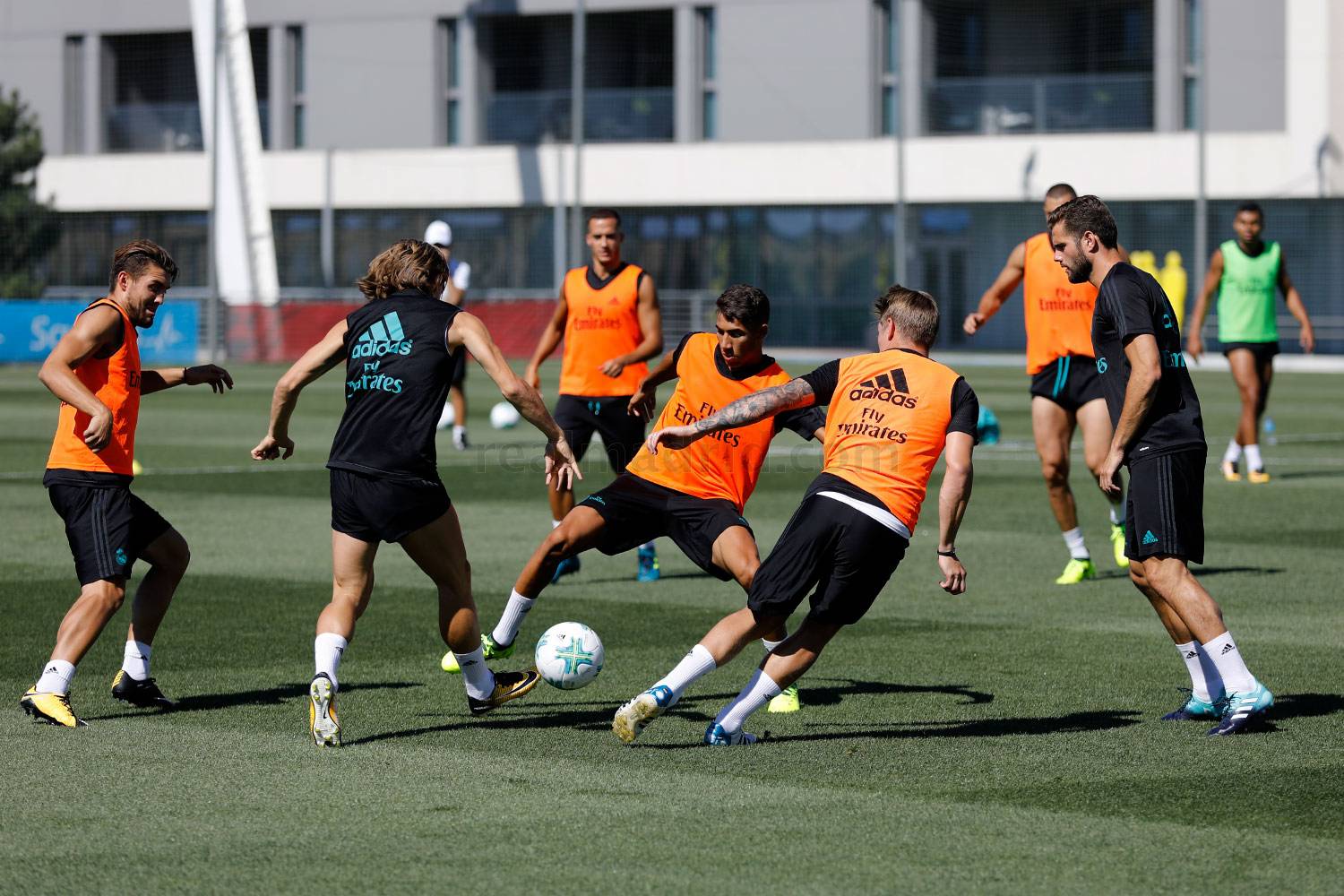 Футболисты Королевского клуба выполнили ряд интенсивных упражнений на движение мяча и владение, после чего поработали над завершением атак. Криштиану Роналду, только вчера вернувшийся из отпуска, провел часть занятия в общей группе, а остальное время работал по индивидуальной программе.
