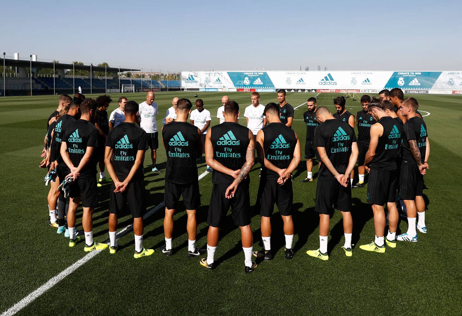 После проведения минуты молчания в память о жертвах терракта, произошедшего в Барселоне, футболисты приступили к занятию, основное внимание во время которого было уделено работе с мячом. Игроки оттачивали навыки точности паса, диагональных передач и ударов по воротам. Матео Ковачич тренировался по индивидуальной программе в тренажерном зале, а Хесус Вальехо продолжает восстановление от травмы.