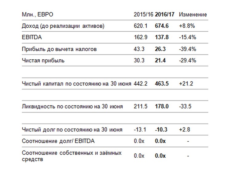 Прогноз на сезон 2017/2018 определяет прибыль в размере 690,3 миллионов евро до реализации активов и прибыль до вычета налогов – около 48,6 миллионов евро.