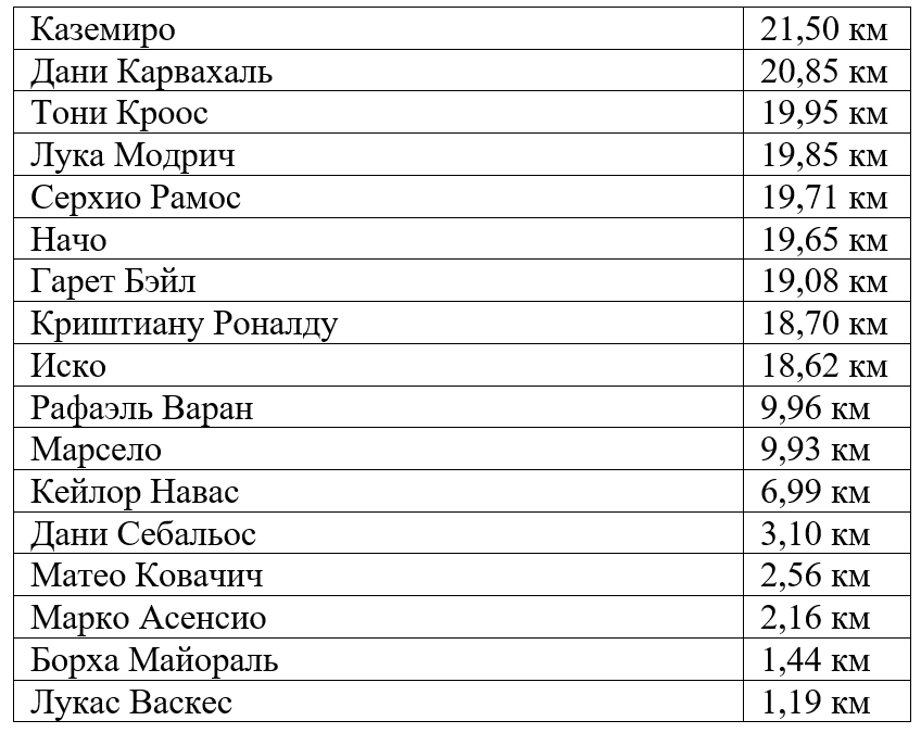 Расстояние, преодоленное игроками «Мадрида» в матчах Лиги Чемпионов