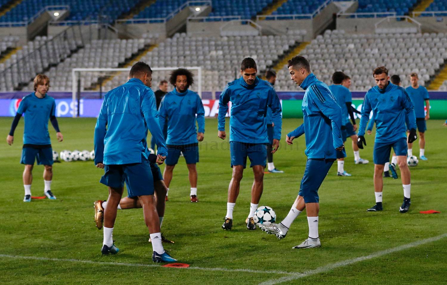 Игроки мадридского «Реала» провели тренировочное занятие в Никосии, на стадионе «Нео ГСП», где завтра состоится встреча пятого тура группового этапа Лиги Чемпионов против кипрского клуба «АПОЭЛ».