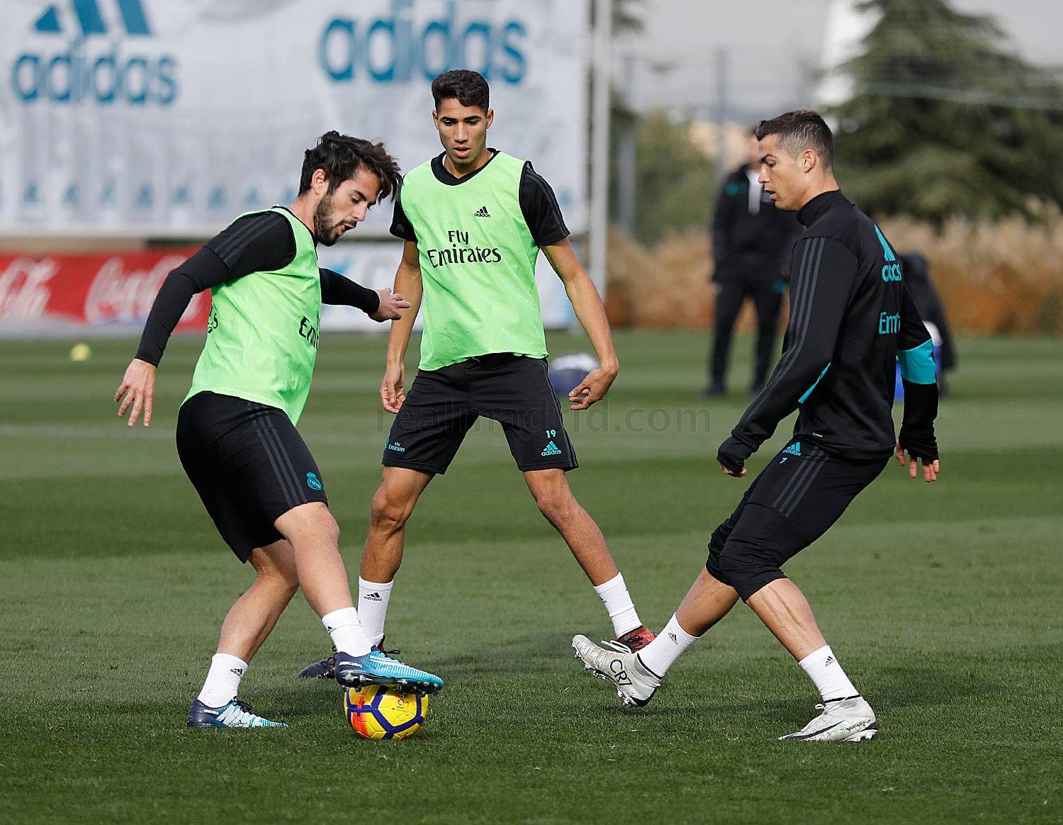 Подготовка началась с сессии из трех упражнений, в ходе которой полевые игроки сочетали физические нагрузки и работу с мячом. Затем они попрактиковались в технике передач и прессинге, после чего провели матчи на полях уменьшенных размеров. Гарет Бэйл, Лука Модрич и Серхио Рамос продолжают процессы восстановления, причем капитан «Мадрида» тренировался отдельно от общей группы.