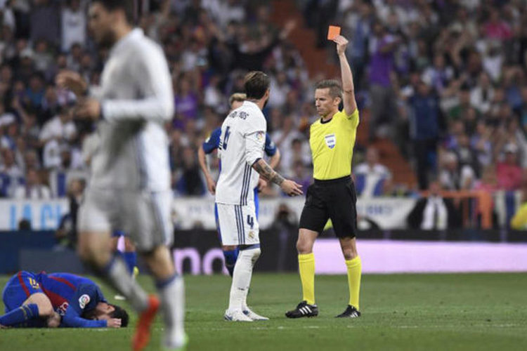 В прошлом сезоне Рамос получил красную карточку на «Сантьяго Бернабеу», за грубое нарушение на Лионеле Месси: капитан покинул поле за 13 минут до конца матча. Он был также удален и в сезоне 2015/16, на этот раз – в игре на «Камп Ноу»: «Мадрид» выиграл тот матч со счетом 2:1, но капитан команды не мог отпраздновать победу на поле, покинув игру на 83-й минуте после получения второй желтой карточки. В кампании 2013/14 Рамос был удален в очередном Класико, получив прямую красную карточку, за фол против Неймара в штрафной – пенальти тогда искусно реализовал Месси.