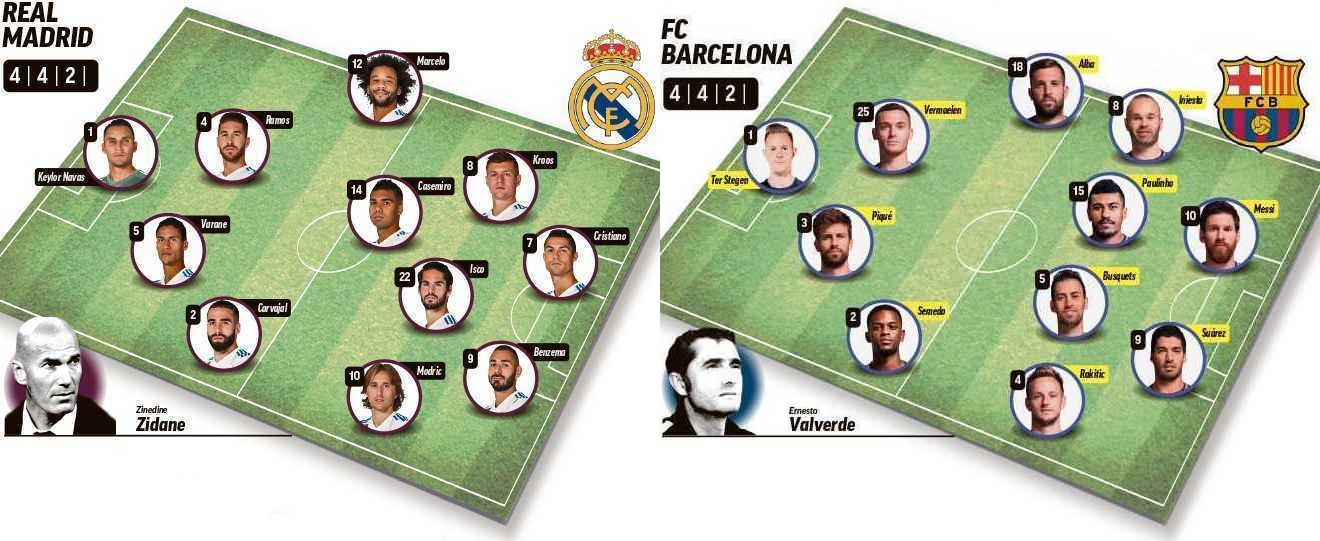 Зидан дал понять, что в Класико на поле выйдет тот же состав, что и в Кардиффе, а точнее, чтобы не ходить так далеко – состав финала Клубного Чемпионата Мира: все игроки основы и Иско, который займет место Гарета Бэйла, готовы к матчу. Зидан подчеркнул, что Бэйл будет готов выйти на поле, но он хочет избежать даже малейшего риска: валлиец хорошо чувствовал себя на Клубном Чемпионате Мира, однако Зидан не изменит своих планов и Гарет начнет матч с «Барселоной» на скамейке запасных.