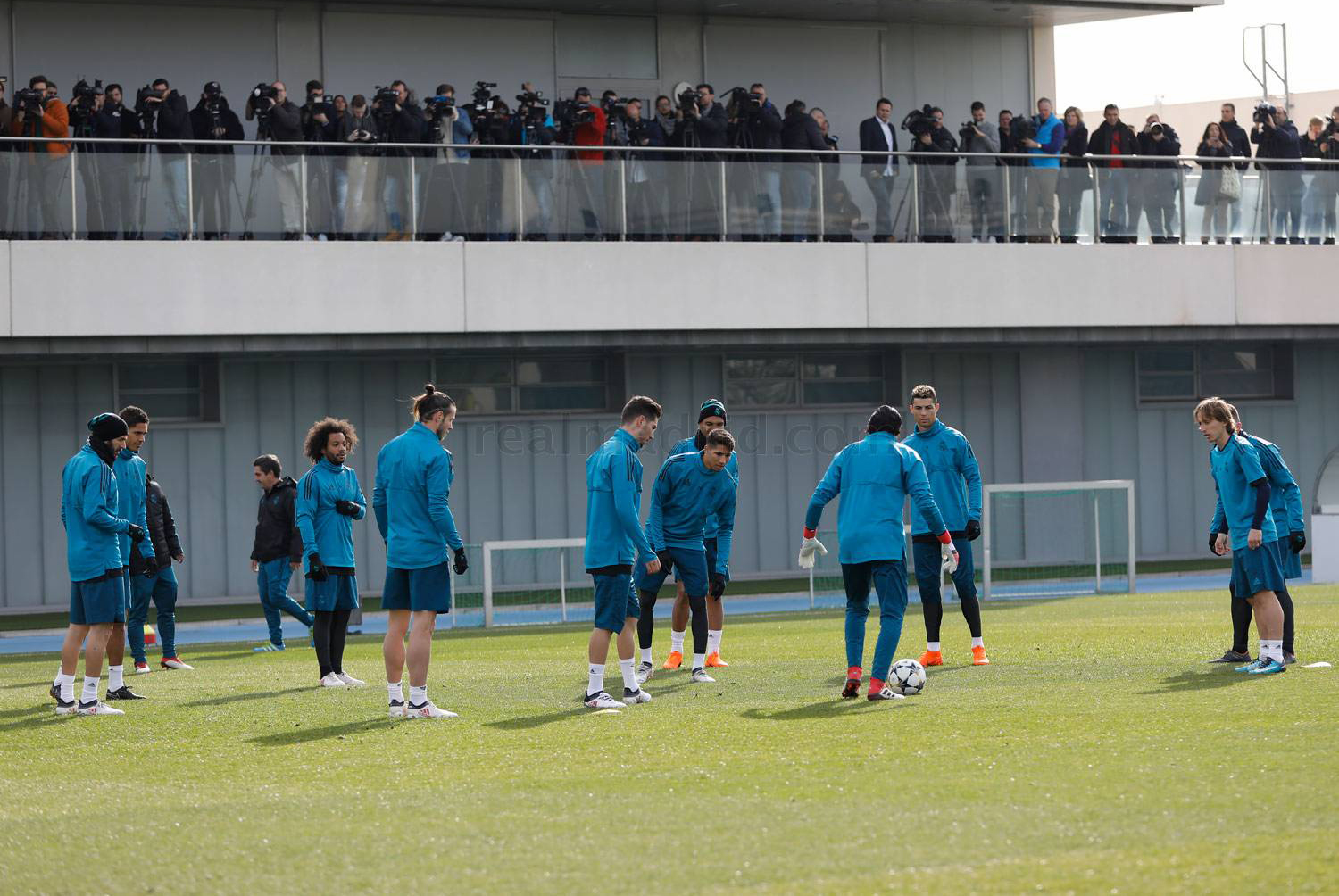 Футболисты мадридского «Реала» провели сегодня последнюю тренировку в рамках подготовки к домашнему матчу с «ПСЖ», который состоится завтра в 22:45 по московскому времени. В распоряжении Зинедина Зидана находились все игроки, кроме Хесуса Вальехо, продолжающего процесс восстановления от травмы и тренировавшегося на поле отдельно от всех. Дани Себальос, приступивший вчера к работе в общей группе, занимался вместе с командой.