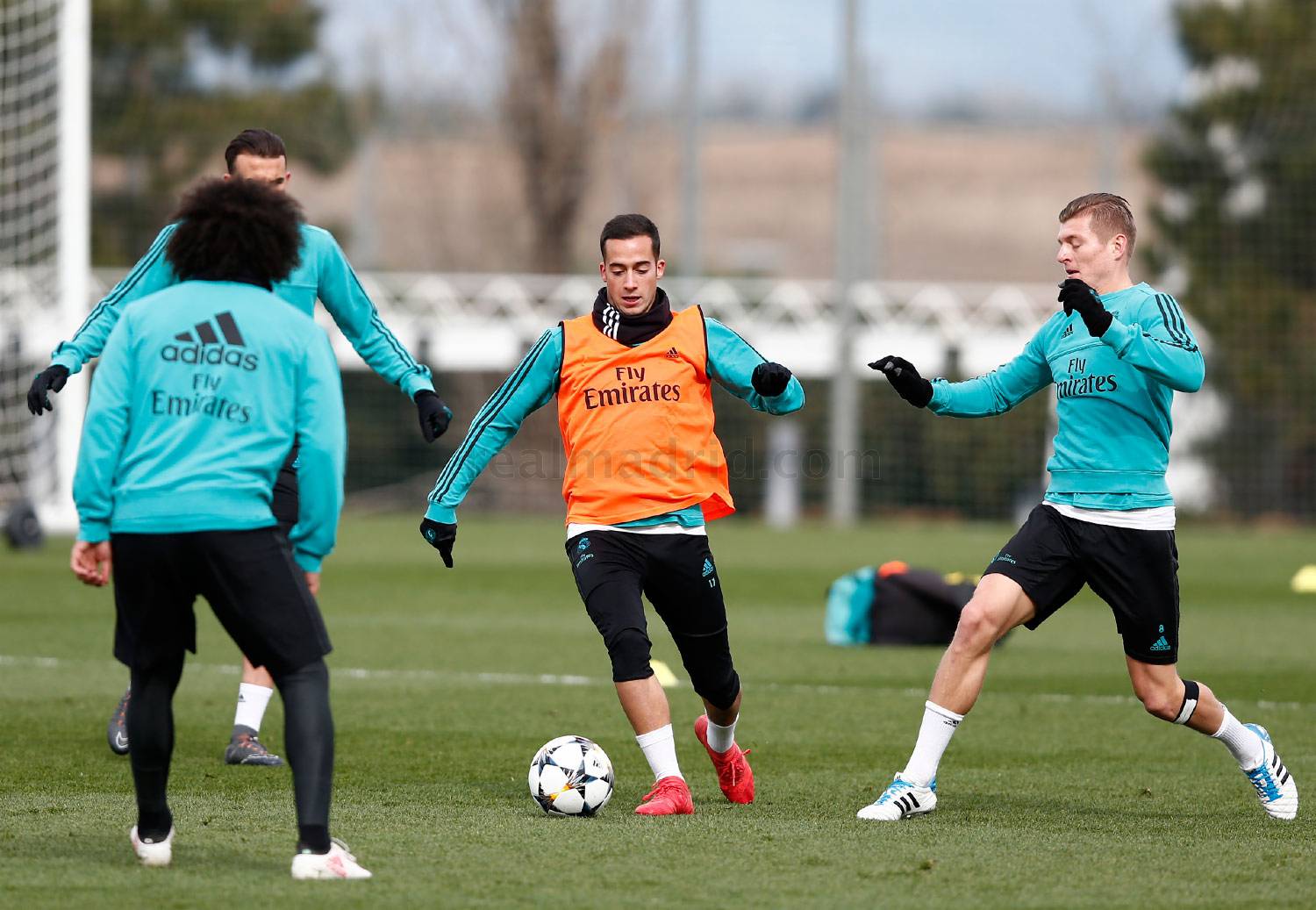 Футболисты, вышедшие во вчерашнем матче в стартовом составе, занимались с пониженной интенсивностью. К тренировке, основной акцент на которой был сделан на работе с мячом, главный тренер команды Зинедин Зидан привлек голкипера «Хувениля» Адриана Родригеса.
