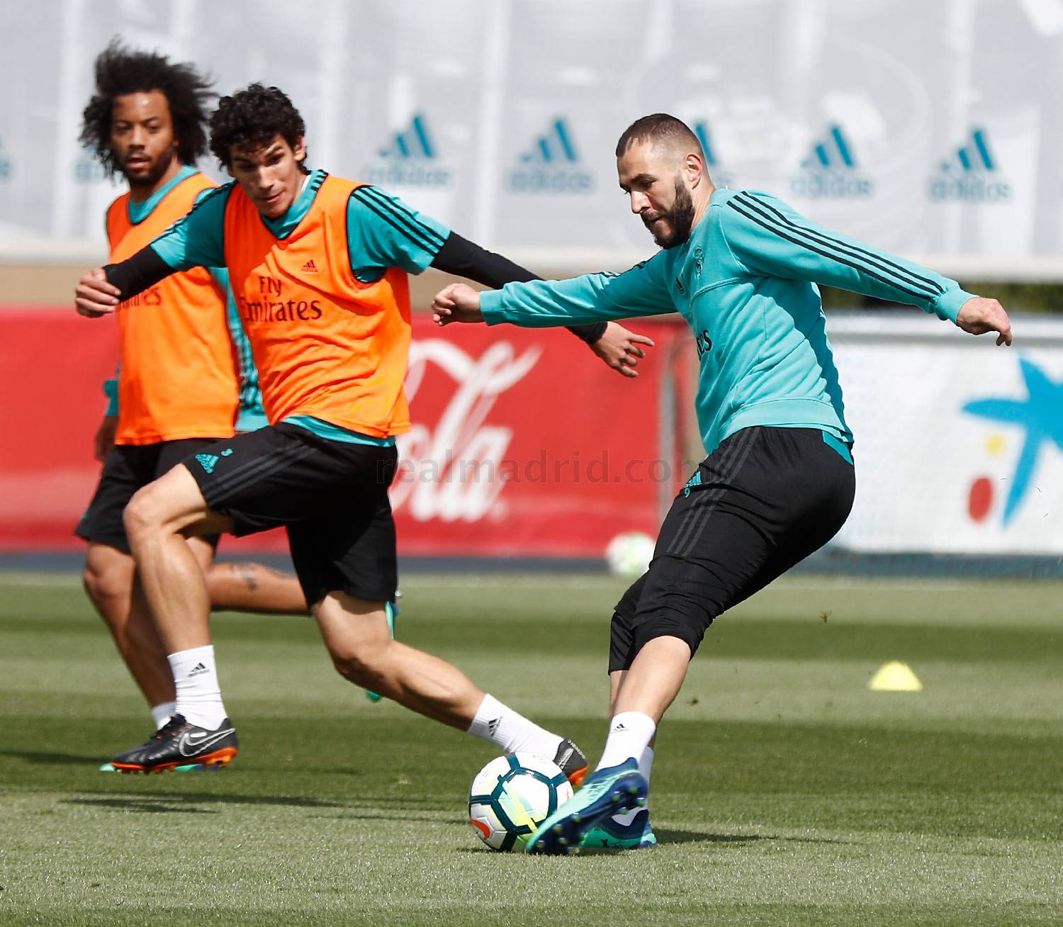 Мадридцы начали сессию с разминки с мячом, затем отработали технику передач и прессинг. По окончании занятия команда сыграла несколько матчей на полях уменьшенных размеров.