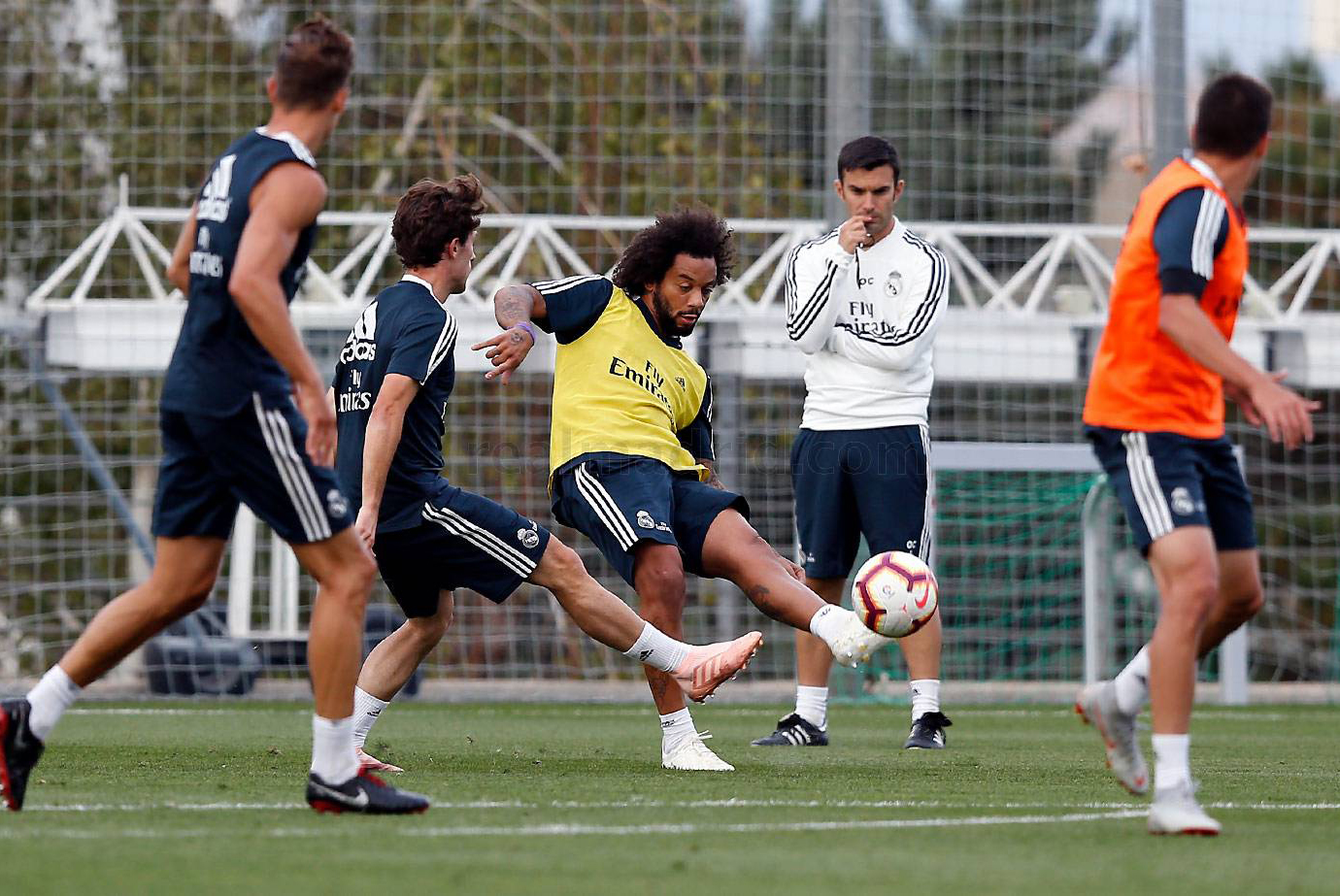 «Реал Мадрид» провел вторую на неделе тренировку без 14 игроков, вызванных в свои национальные сборные. Марсело проделывал некоторые упражнения вместе со всей командой, в то время как Иско совмещал занятия в зале и на поле, работая с мячом и без него. Дани Карвахаль и Карим Бензема продолжают восстанавливаться от травм.