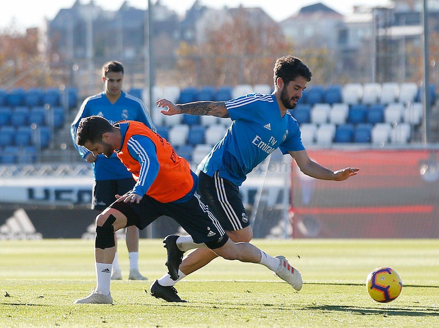 На утренней тренировке футболисты работали без мяча, занимаясь физическими упражнениями после перерыва на праздники. Тренировка началась в тренажерном зале, после чего игроки вышли на поле и разделились на две группы, чтобы выполнить беговые упражнения различной интенсивности. Вместе с игроками первой команды тренировался также футболист «Кастильи» Хави Санчес, а Мариано занимался отдельно от группы с мячом.