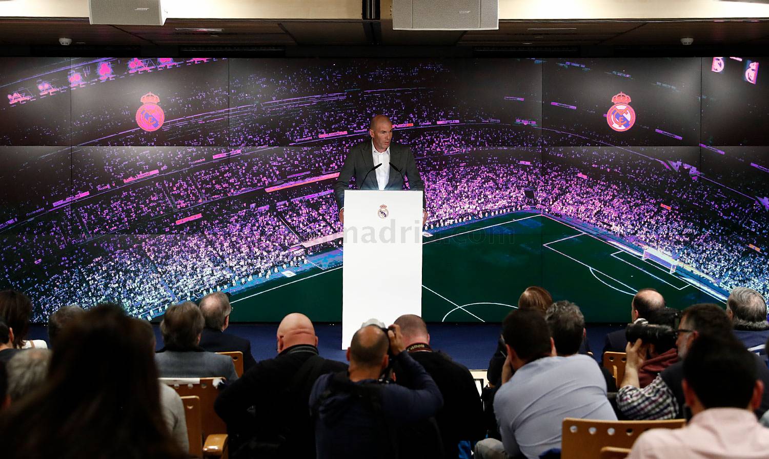Сегодня вечером на «Сантьяго Бернабеу» прошла презентация Зинедина Зидана в качестве нового главного тренера «Мадрида». Сначала слово взял Флорентино Перес, который поприветствовал тренера, после чего Зидан ответил на вопросы журналистов.