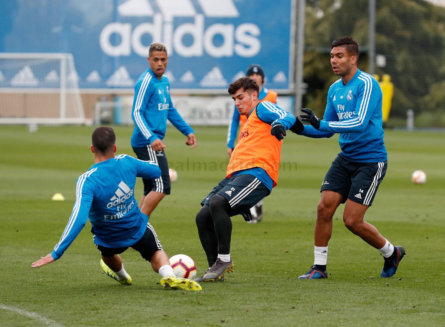 Дани Карвахаль большую часть тренировки провел в общей группе. Маркос Льоренте работал в тренажерном зале, Тибо Куртуа и Винисиус продолжают восстанавливаться после травм, причем бразилец выполнял пробежки по газону.
