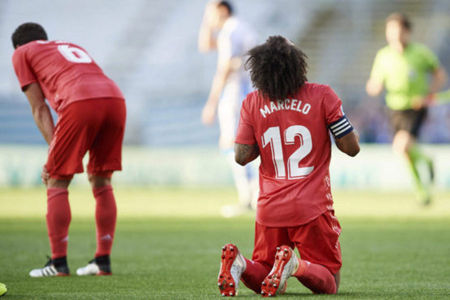 К последнему туру Ла Лиги у «Мадрида» на 25 голов меньше, чем у «Барселоны», пропустили «сливочные» 44 раза, что непозволительно много для команды, которая должна бороться за титул. Вчера соперник забил в ворота «Мадрида» три мяча, и нужно сказать за это спасибо, ведь их могло быть и больше: «Реал Сосьедад» не реализовал пенальти и дважды отправлял мяч в перекладину. Зидан, как и ранее в Вальекас, безнадежно понурил голову, глядя на спектакль, который исполняли на поле его футболисты.