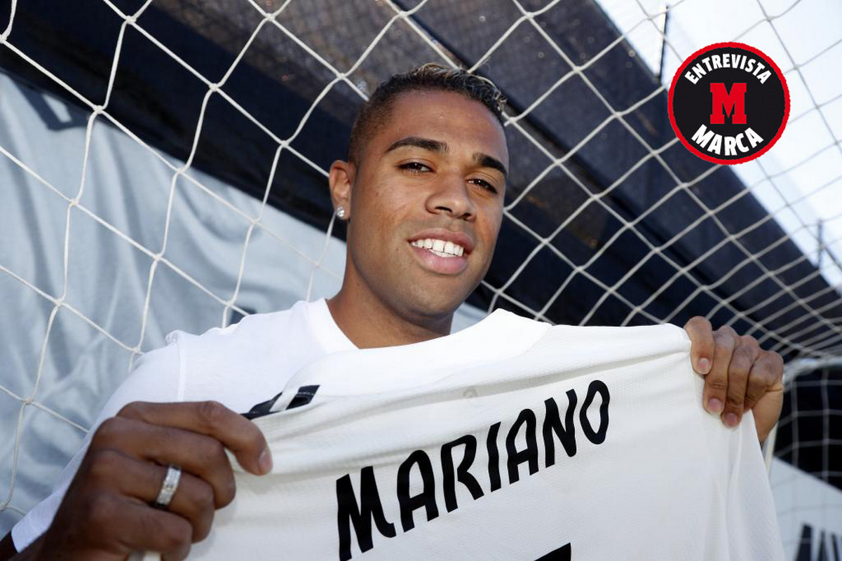Нападающий «Реал Мадрид» Мариано Диас дал интервью изданию Marca на заднем дворе своего дома в Премия-де-Мар, на мини-футбольном поле, дизайн которого выполнен в цветах «Мадрида».