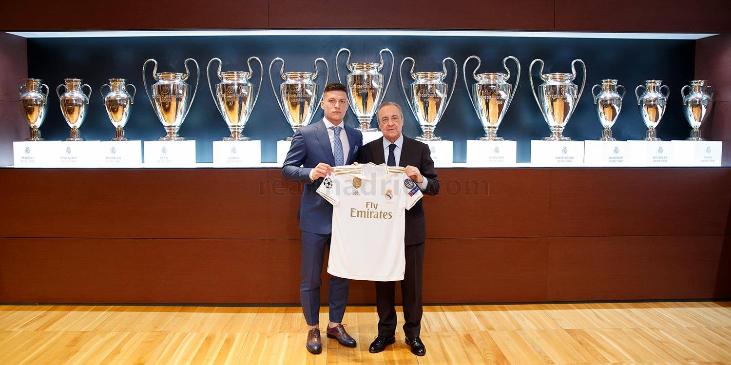 В среду в президентской ложе «Сантьяго Бернабеу» состоялась презентация Луки Йовича в качестве нового игрока «Реал Мадрид», подписавшего контракт с клубом на шесть лет. После показа видео с лучшими моментами в карьере нового игрока «сливочных», Флорентино Перес взял слово, чтобы поприветствовать нападающего: