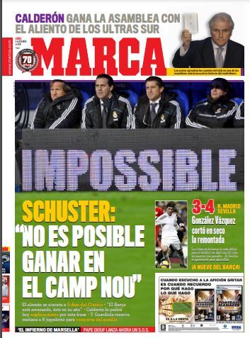 Казалось, что у «Мадрида» есть все, чтобы удачно завершить цикл с Шустером, но перед Рождеством все рухнуло. Вылет из Кубка Короля от «Реал Унио», домашнее поражение от «Севильи» (3-4).