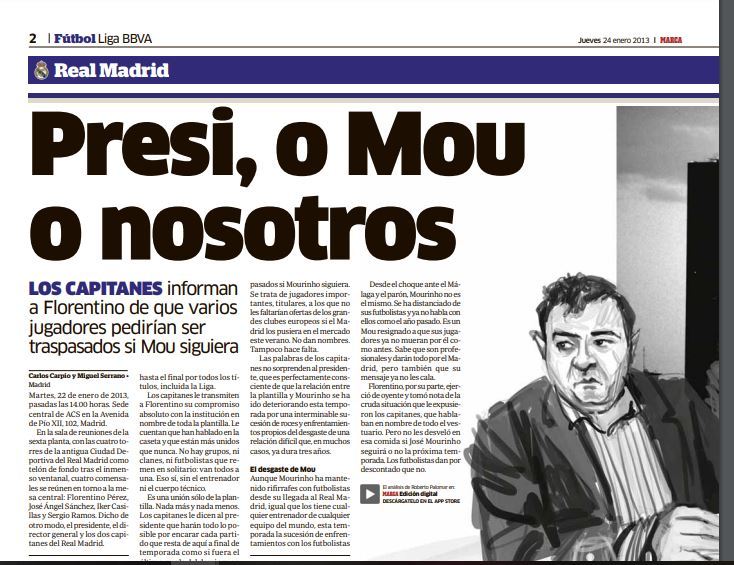 Вскоре появились проблемы: «Я расстроен в связи с профессиональным вопросом, в клубе знают об этом, поэтому я не праздную голы – я несчастлив. Здесь все знают причину», – сказал Криштиану Роналду в начале сентября. Рамос на скамейке запасных в матче с «МанСити» создал напряжение, достигшее апогея в январе. Уже Икер Касильяс был запасным, прошло собрание, на котором Флорентино Перес услышал:
