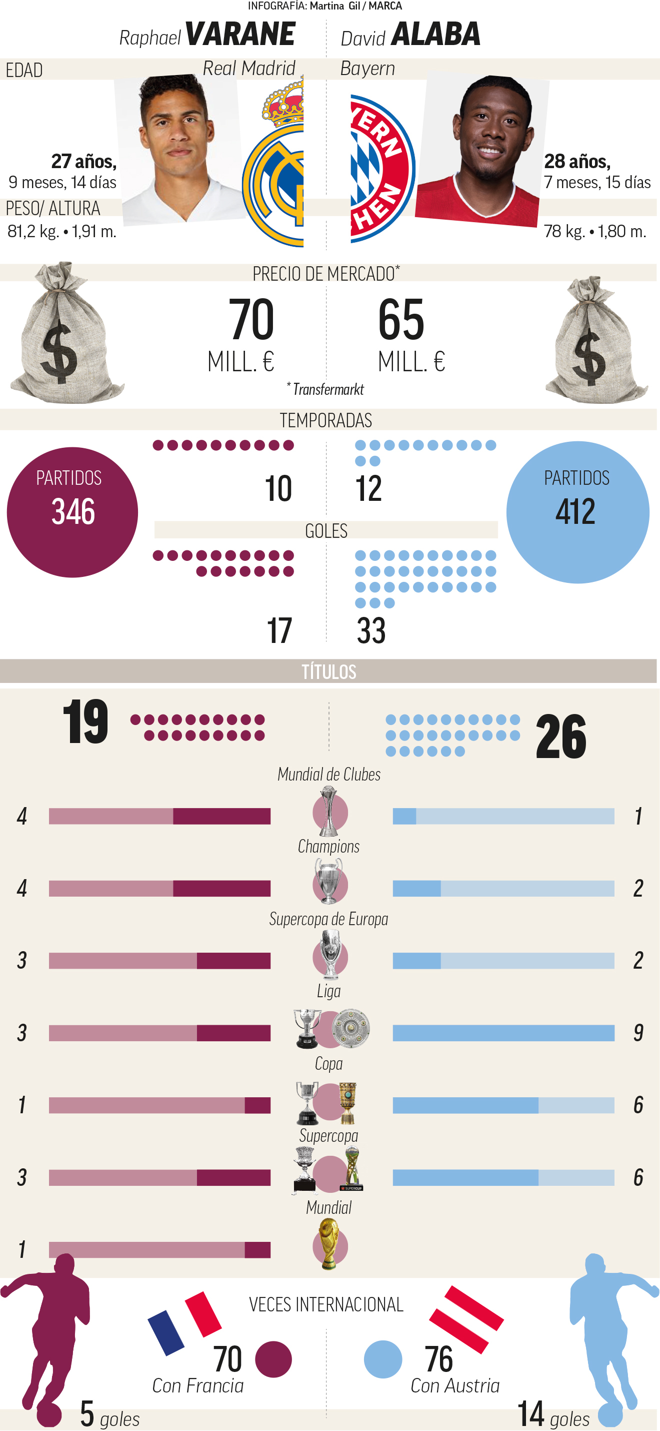 Пути Давида Алабы и Рафаэля Варана схожи. Это два ровесника, оба очень молодыми начали соревноваться на самом высоком уровне, спустя 10 лет выиграли все, что возможно со своими клубами и сейчас ищут новый вызов. Контракт Алабы с «Баварией» истекает, что позволяет ему свободно обсуждать новое соглашение с «Мадридом». Все указывает на то, что у Рафаэля Варана, сейчас зарабатывающего около 6 млн. евро в год, схожие цели.