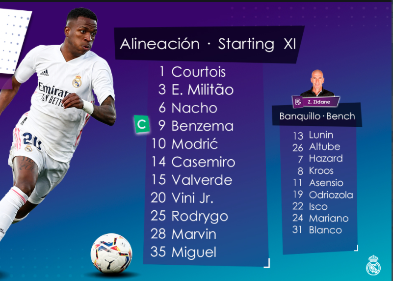 Несмотря на то, что у француза было всего три подходящих защитника первой команды (Альваро Одриосола, Начо Фернандес и Эдер Милитао) Зидан счел нужным вызвать левого защитника «Кастильи» Мигеля вместо Марсело.