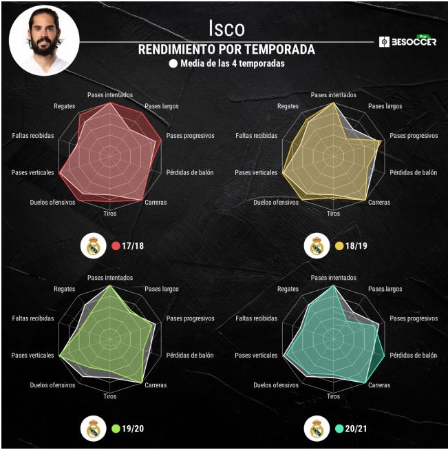 Возвращение Карло Анчелотти в «Мадрид» изменило перспективы полузащитника из Малаги. После печального сезона 2020/21, когда он практически исчез из стартовых составов «Мадрида», возвращение итальянского тренера стало глотком свежего воздуха для Иско, который чувствует, что дует ветер перемен. За пять сезонов, проведенных под руководством Зидана, полузащитник привык выступать на высоком уровне в отдельные отрезки сезона, а в другие периоды сезона уходить в небытие. Однако это не первый и не последний раз, когда он возрождается как феникс.
