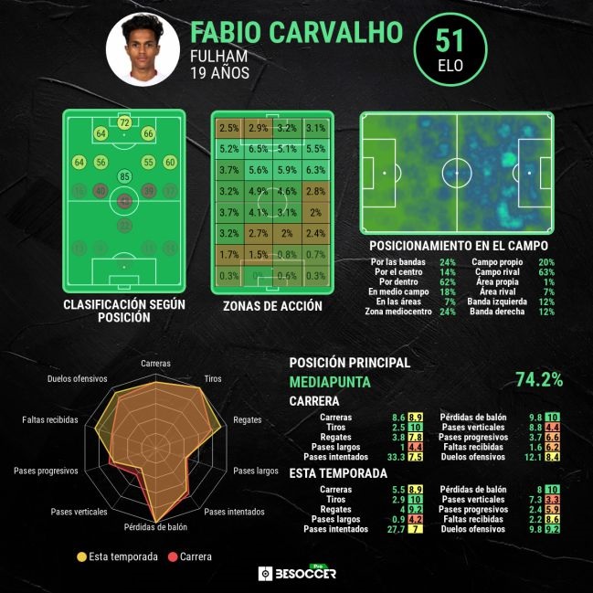 В прошлом сезоне, еще в составе филиала «Фулхэма», Карвальо продемонстрировал свой профессионализм: 11 голов и 6 голевых передач в 13 матчах Премьер-лиги 2. В этом сезоне он вполне заслуженно стал игроком первой команды: на его счету уже 3 гола и 1 ассист в 5 матчах. По данным Daily Mail, в услугах Фабио заинтересован не только «Фулхэм», но и несколько команд из верхней части таблицы Премьер-Лиги.
