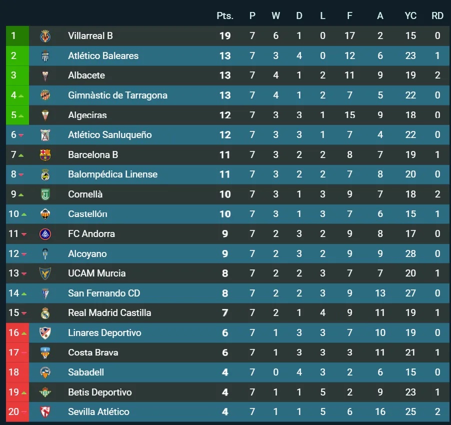 В этом сезоне «Кастилья» испытывает серьезные трудности: команда занимает 15-е место в турнирной таблице, имея в своем активе семь очков. «Сливочные» выиграли два матча, один раз сыграли вничью, а остальные четыре проиграли. Последняя игра, против «Корнельи», закончилась для «Кастильи» поражением со счетом 0-1. На данный момент у команды четыре поражения в четырех выездных матчах. К счастью, следующая игра против «Барселоны Б» пройдет дома, где мадридисты дважды побеждали и один раз сыграли вничью.