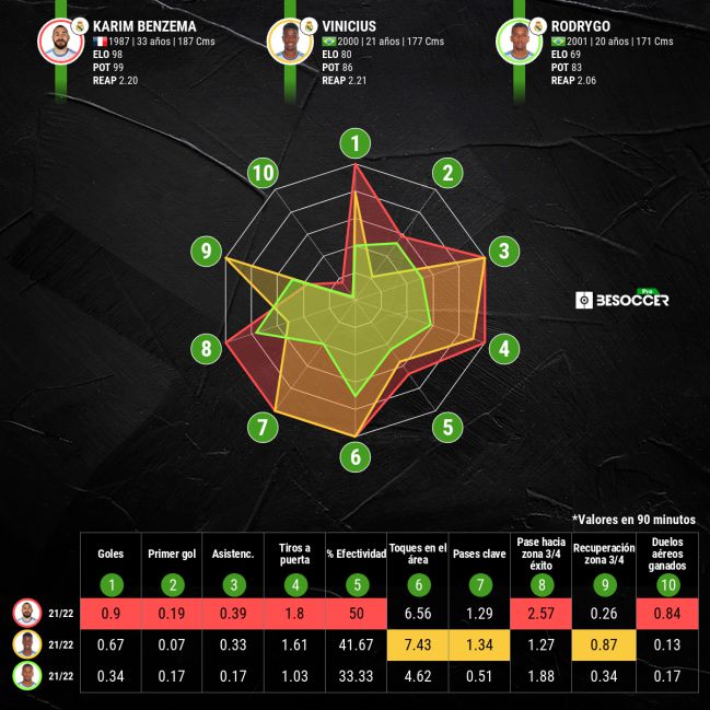 Анчелотти имеет четкое представление о своем атакующем трезубце, когда звучит гимн Лиги Чемпионов. Восстановившись после травмы, из-за которой он не смог сыграть против «Шахтера» на «Бернабеу», Родриго вернулся в стартовый состав в своем любимом соревновании. На этот раз он не забил, но отдал голевую передачу Кроосу, который позволил «Мадриду» уйти на перерыв с комфортным счетом 0:2. На данный момент атакующий трезубец «сливочных» в Лиге Чемпионов состоит из Бензема, Винисиуса и Родриго. Между собой они забили три четверти голов «Мадрида» в Европе в этом сезоне: девять из 12 голов команды Анчелотти. У них также пять голевых передач. Родриго, помимо голевой передачи Кроосу в Тирасполе, также принял участие в атаке, которая завершилась автоголом Кривцова в матче против «Шахтера».