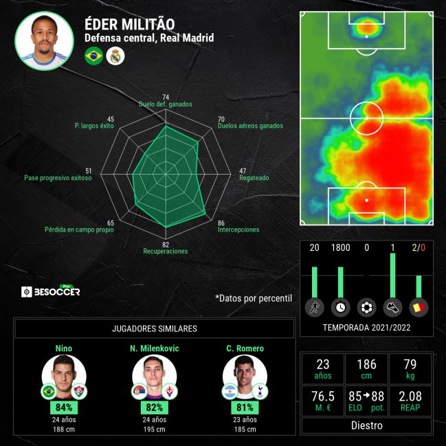 Перейдя в «Мадрид» из «Порту» летом 2019 года, бразилец не сразу смог доказать болельщикам и тренерам, что 50 миллионов, заплаченные за него, стоили того. Однако вторая половина прошлого сезона, когда из-за травмы Рафаэля Варана и Серхио Рамоса основную пару защитников составили Начо и Эдер, всё поменяла. В нынешнем сезоне Милитао отлично сыгрался с Дэвидом Алабой, да и со своим «старым» партнером Начо они всё еще хороши.